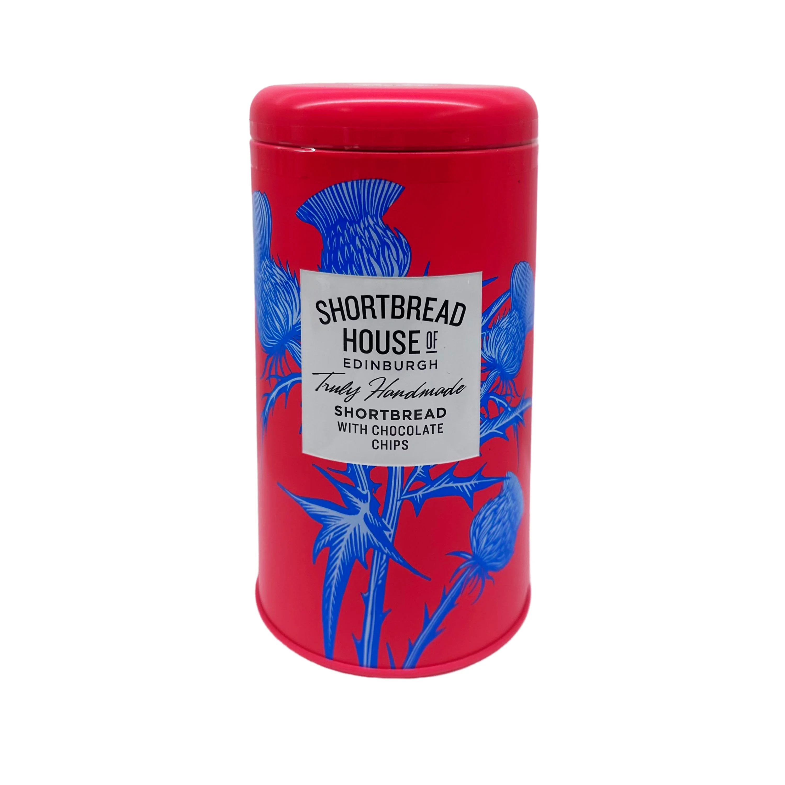 Goda Shortbreads med chocolate chips i en fin och praktisk plåtburk. Perfekt tillsammans med en kopp kaffe eller te. 140 gram.