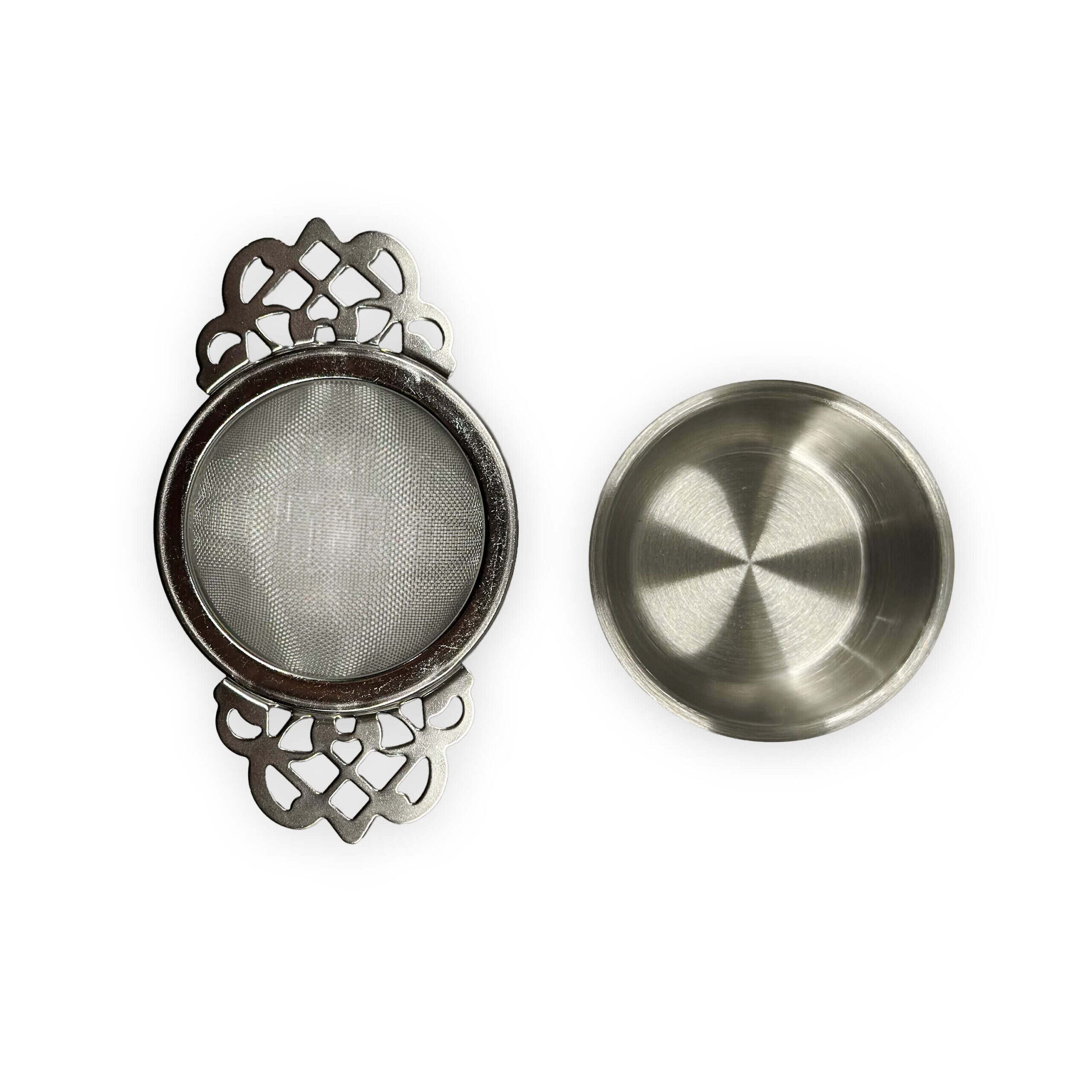 Praktiskt tesil med bricka ”drip catcher”. Lätt att rengöra efter användning.